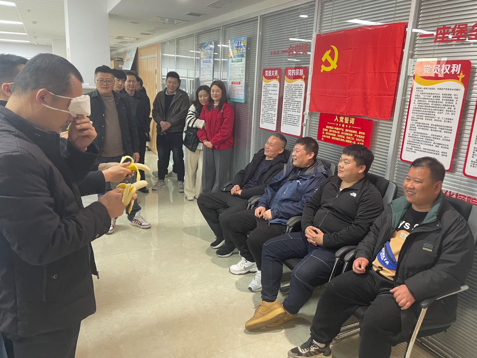 活動(dòng)現(xiàn)場(chǎng),“蒙眼喂香蕉” 游戲率先點(diǎn)燃?xì)g樂(lè)氣氛。員工們兩兩搭檔,蒙眼者在隊(duì)友的語(yǔ)音指揮下摸索前行,試圖將香蕉準(zhǔn)確送入對(duì)方口中。這一過(guò)程中,蒙眼者的每一步都伴隨著同事們的歡聲笑語(yǔ)與熱心提示,既考驗(yàn)了搭檔間的信任與默契,也拉近了大家彼此的距離。